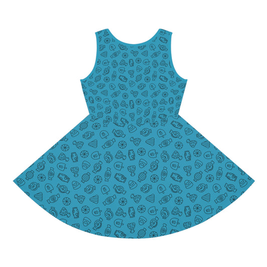 Turquoise Halloween Candy Girls' Sleeveless Sundress (AOP)
