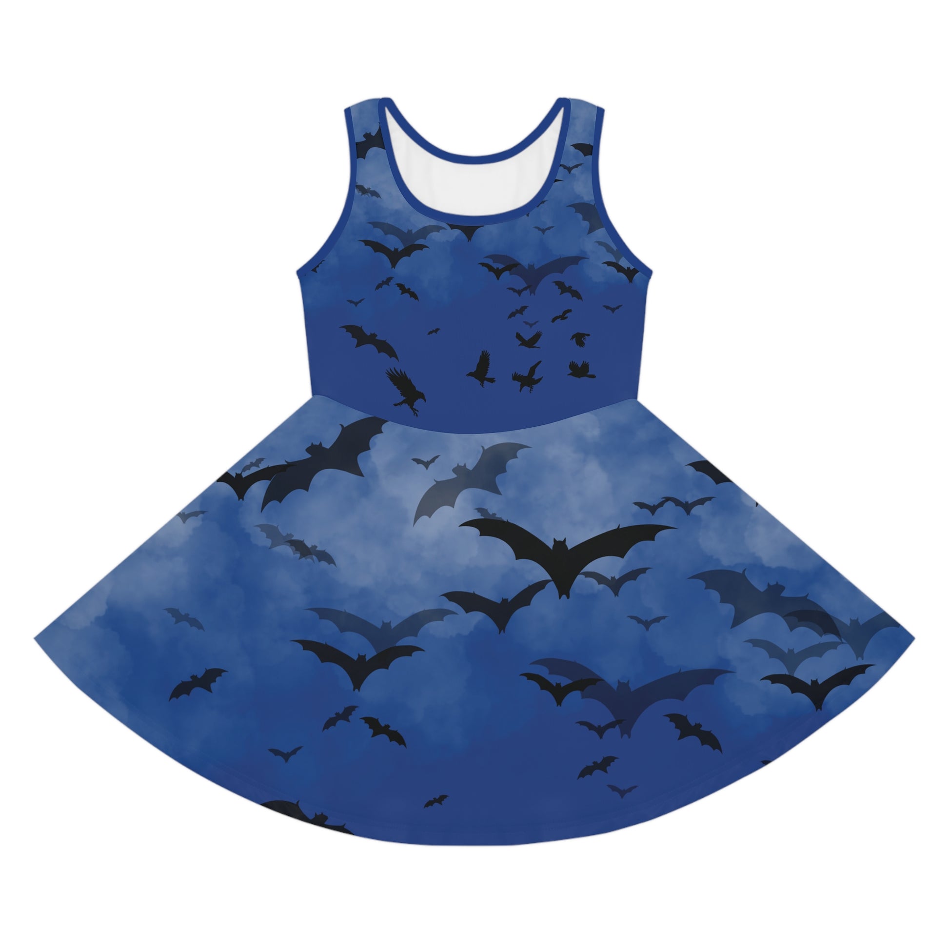 Girls' Dark Blue Halloween Bats Sleeveless Sundress (AOP)