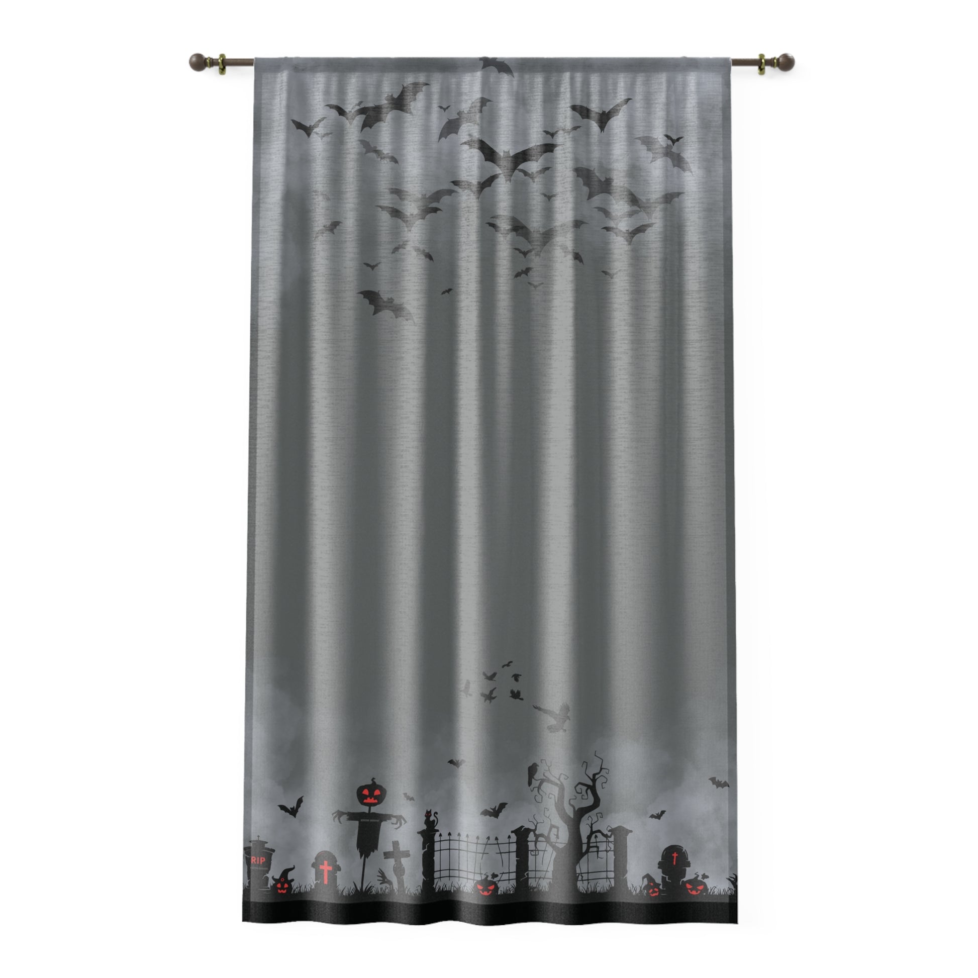 Windsor Wonders Dark Grey Halloween Graveyard Window Curtain