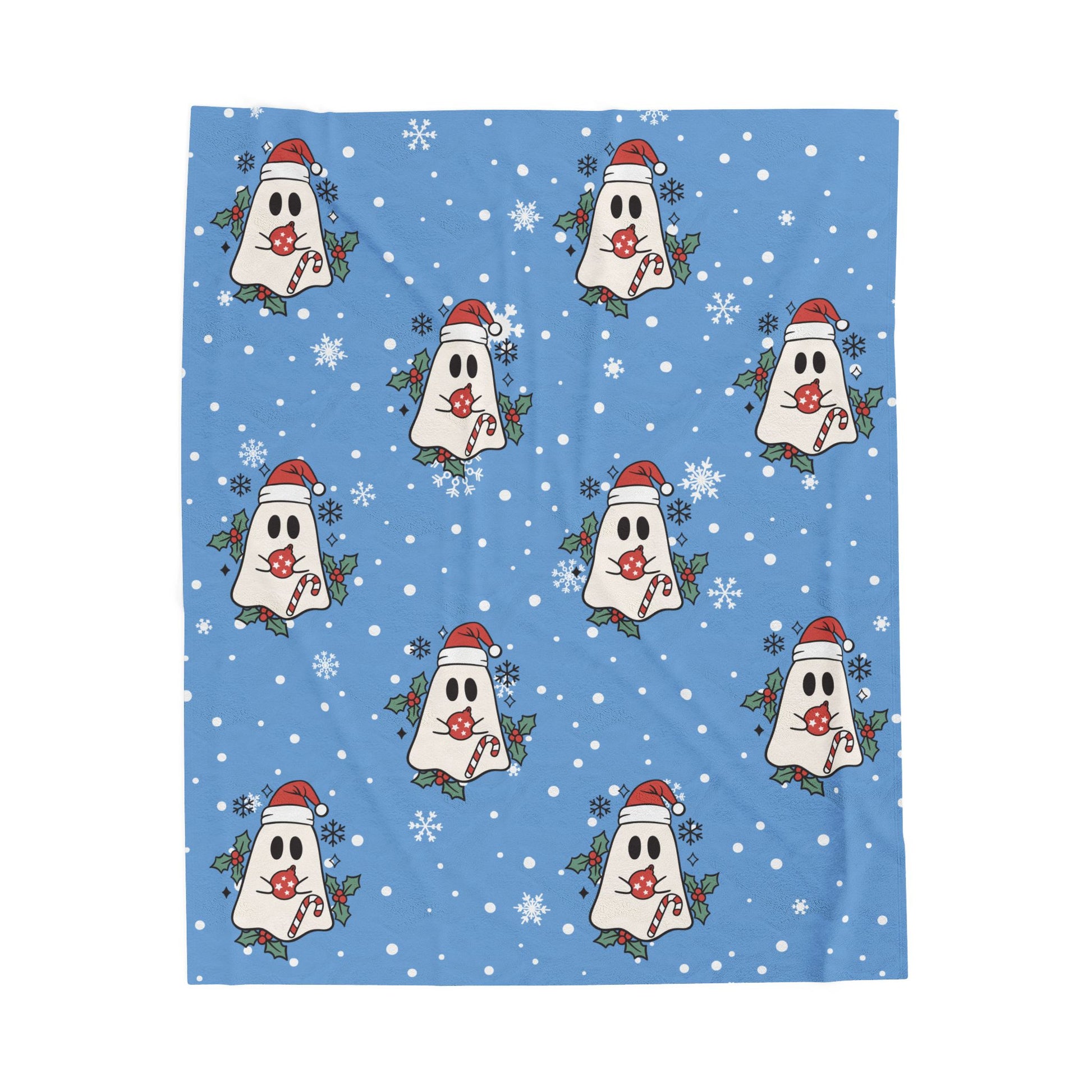Festive Spirits Light Blue Velveteen Plush Blanket